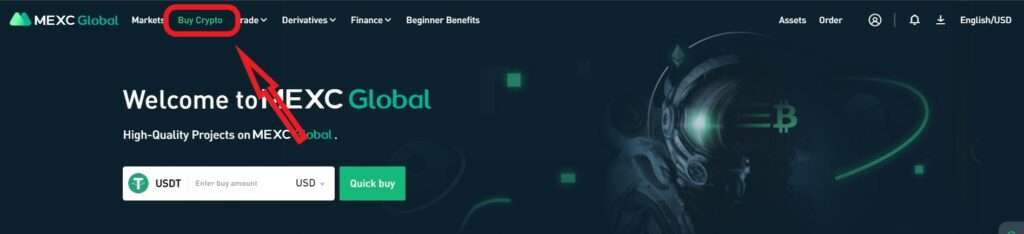 成功登录MEXC后,点击“购买加密货币”,然后点击“设置”。