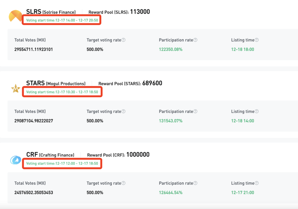 例如,如果您已经参加过 CRF 或 STARS Kickstarter 活动,由于 MX 代币已解锁,您也许也可以加入 SLRS Kickstarter 活动。